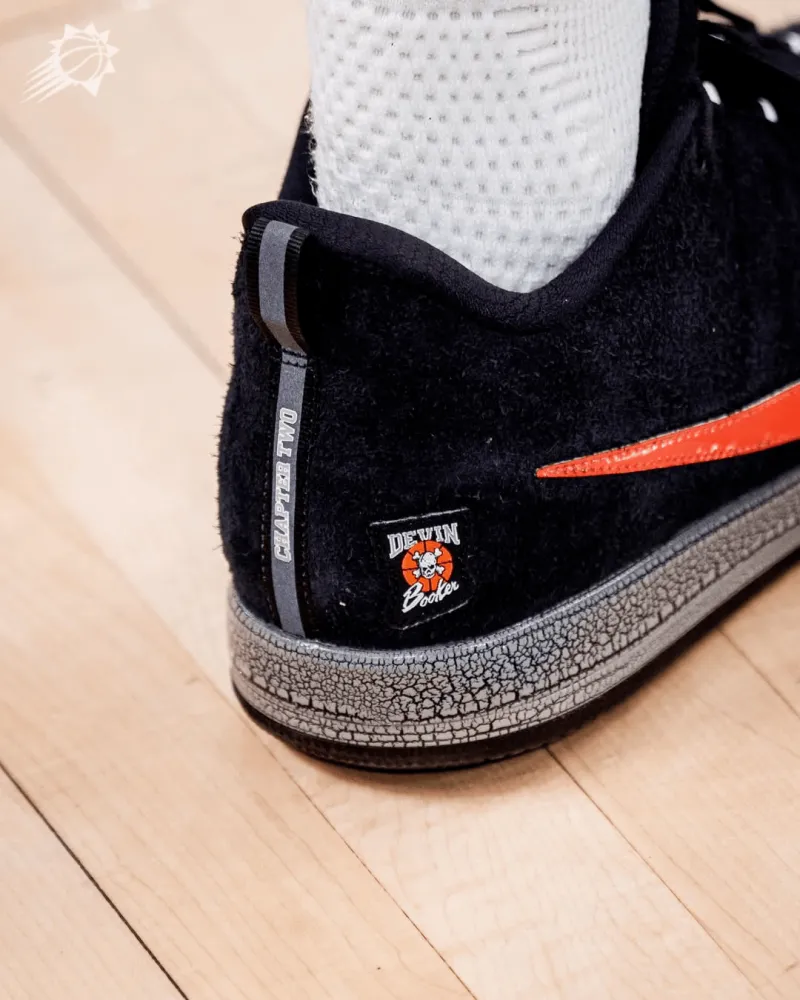 比赛中,布克上脚Nike BOOK2“Bad Boy”PE,配色灵感来自布克家乡球队—底特律活塞坏孩子军团。